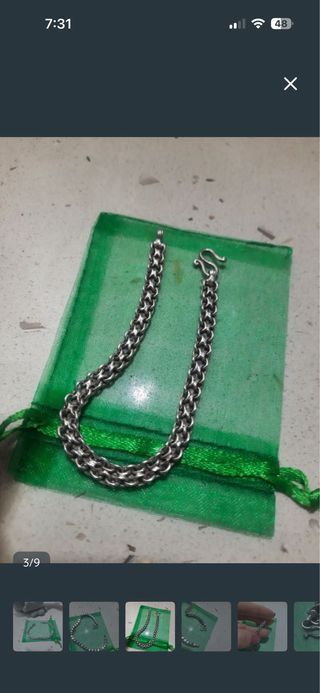 Elegante pulsera de plata con un diseño de cadena robusto y llamativo. Perfecta para añadir un toque de estilo a cualquier atuendo. -Se puede usar por los dos lados -Lleva el sello de plata y maciza - Diseño de eslabones entrelazados. - Cierre de gancho seguro y fácil de usar.