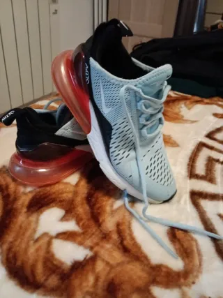 Pone talla 38.5 pero dan menos talla ...para talla 37-37,5 . Zapatillas deportivas Nike Air 270 con un diseño moderno y llamativo. - Combinación de colores azul y rojo. - Detalle de logo en el lateral. - Unidad Air visible en el talón.