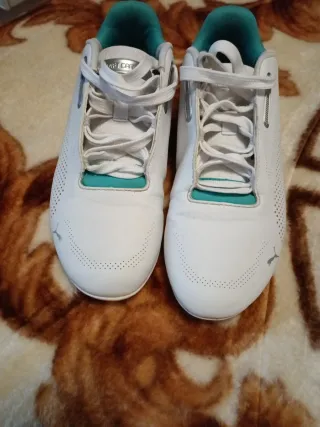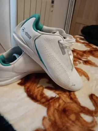 Zapatillas deportivas Puma con detalles en verde. Talla pone 38 pero dan menos talla ..para un 37 mejor . Mui cómodas y elegantes . - Diseño inspirado en la Fórmula 1. - Combinación de blanco y verde. - Logo de Puma y AMG Petronas visible.