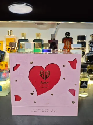 Este es el perfume Saher de Nusuk, con un diseño de caja muy especial. - Contenido: 100ml. - Formato: Vaporisateur - Natural Spray. - Concentración: 80% Vol. - Volumen: 3.4 fl. oz. Saher de Nusuk es una fragancia de la familia olfativa Floral Frutal Gourmand para Mujeres. Esta fragrancia es nueva. Saher se lanzó en 2025. Las Notas de Salida son Pulpa de manzana, gamuza y casis (grosellero negro) Notas de Corazón son lirio de los valles (muguete), pétalos de rosa, madera de cachemira y jazmín Notas de Fondo son almizcle blanco, vainilla, durazno (melocotón) y ámbar gris.