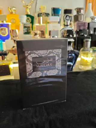 Perfume árabe Hawas for Him de Rasasi, Precintado. - Fragancia masculina. - Presentación elegante. Hawas for Him de Rasasi es una fragancia de la familia olfativa Aromática Acuática para Hombres. Hawas for Him se lanzó en 2015. Las Notas de Salida son manzana, bergamota, limón (lima ácida) y canela Notas de Corazón son notas acuosas, ciruela, flor de azahar del naranjo y cardamomo Notas de Fondo son ámbar gris, almizcle, pachulí y trozos de madera a la deriva.