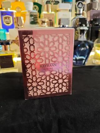 Perfume Rayhaan Divine de 100ml, completamente precintado. - Fragancia árabe. - Diseño de la caja con motivos geométricos. - Color dorado y rosa. Rayhaan Divine de Rayhaan es una fragancia de la familia olfativa Floral para Mujeres. Esta fragrancia es nueva. Rayhaan Divine se lanzó en 2026. Las Notas de Salida son lichi, bergamota y jengibre Notas de Corazón son peonía, rosa y vainilla Notas de Fondo son pachulí y chocolate.