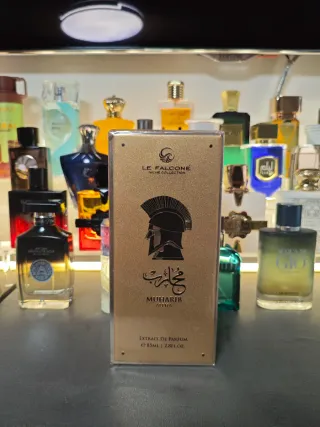 Este es el perfume Muharib Alpha de Le Falconé. Precintado - Presentación en caja dorada. - Contiene 85ml (2.8 FL.OZ.) de extrait de parfum. Muharib Alpha de Le Falconé Perfumes es una fragancia de la familia olfativa Oriental Especiada para Hombres. Esta fragrancia es nueva. Muharib Alpha se lanzó en 2024. Las Notas de Salida son lavanda, canela y menta Notas de Corazón son cardamomo, vainilla, benjuí y nuez moscada Notas de Fondo son tabaco, miel y haba tonka.