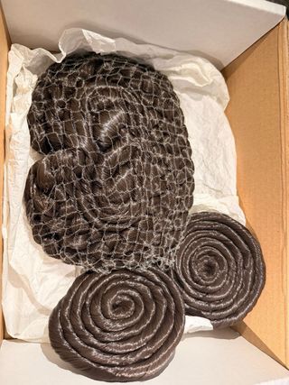 Dos conjuntos de rodetes para fallera, con un diseño trenzado y enrollado, cosidos. - Elaborados con cabello sintético de alta calidad. - Color marrón oscuro num 2, ideal para traje regional valenciana. - Se presentan en un embalaje protector. - Precio por cada uno.
