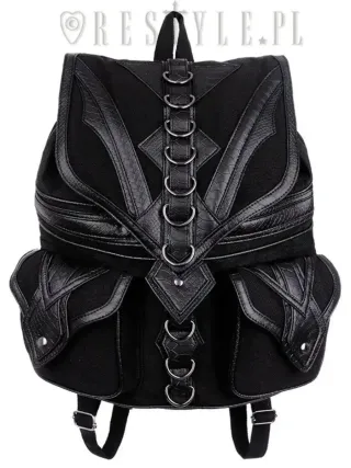 Bolso con un diseño único inspirado en dragones. - Cierre principal con solapa. - Múltiples bolsillos frontales. - Adornos metálicos. - Correas ajustables.