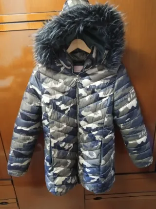 Chaqueta con estampado de camuflaje y capucha. - Diseño acolchado. - Capucha con pelo sintético. - Cierre de cremallera frontal.