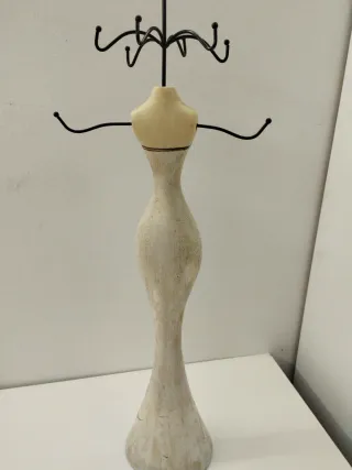 Original colgador para organizar tus collares y pulseras. Su diseño en forma de maniquí le da un toque elegante a tu tocador. - Altura 53cm aproximadamente. - Adornado con un patrón de hojas y ramas en marrón. - Estructura superior metálica con múltiples ganchos para colgar joyas. - Material bambú. Se realizan envíos y también se entrega en mano.