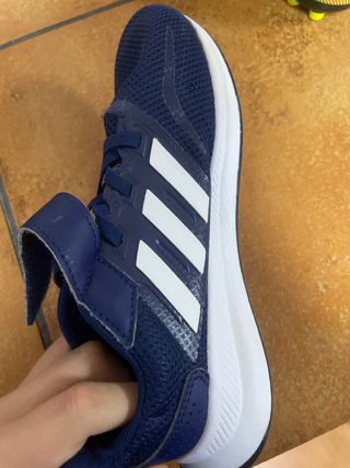 Zapatillas deportivas Adidas para niños. - Diseño con tres franjas blancas. - Cierre de velcro y cordones. - Material exterior de malla transpirable. Talla 34 Sin plantilla