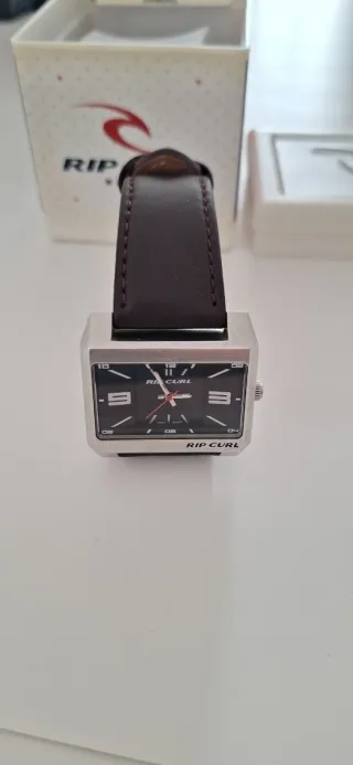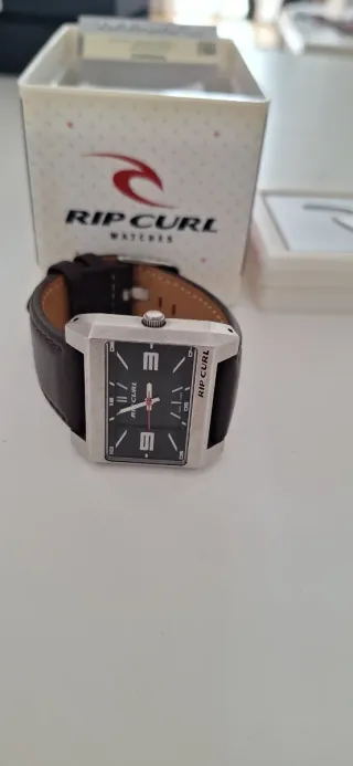 Rip Curl Tarmac (A2028/A2028-WBL) Material de la caja: 100% acero inoxidable. El modelo de la imagen tiene una correa de cuero. Mecanismo de joyería (jeweled movement), lo que ayuda a reducir la fricción para una mayor precisión y durabilidad. Resistencia al agua: Probado hasta 100 metros (330 pies), apto para surf y natación. Esfera: Cristal mineral endurecido. Dimensiones: La correa ancha es de aproximadamente 40 mm (1 3/8 pulgadas). Con caja y papeles.