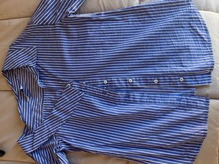Camisa Rayas Azul y Blanca Cuello Irregular
