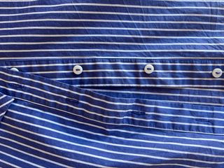 Camisa de rayas con un diseño de cuello irregular. - Rayas finas en azul y blanco. - Cierre de botones.