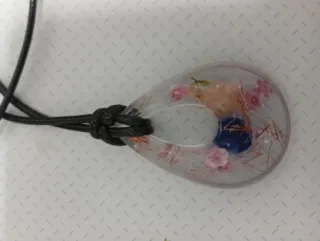 Colgante de orgonita artesanal, una pieza única con elementos naturales encapsulados. - Diseño con flores secas y piedra azul. - Incluye cordón negro para llevarlo. - Elaborado con resina transparente.