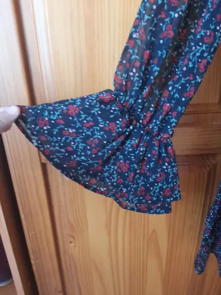 Vestido de Zara con un bonito estampado floral. - Diseño con cuello lazo. - Mangas largas acampanadas. - Cintura elástica. - Tejido ligero y vaporoso.