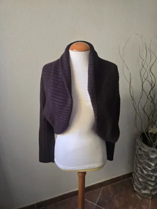 Bolero de punto en color marron talla L. Es una prenda corta y elegante. - Tejido suave y agradable. - Diseño abierto con cuello.