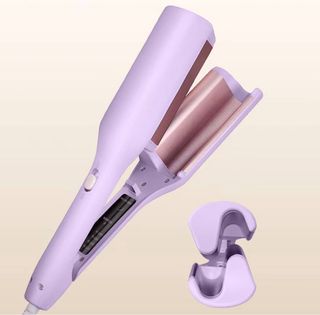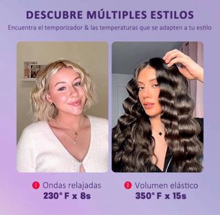 Ondulador de pelo con un diseño moderno y elegante. - Barras onduladas para crear peinados. - Mango ergonómico para un agarre cómodo. - Soporte incluido para colocar el ondulador.