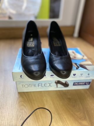 Elegantes tacones de la marca Desire. - Color negro. - Diseño clásico. - Tacón de altura baja