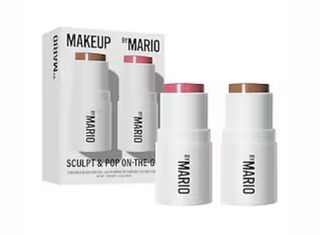 Set de dos productos de maquillaje en formato mini. - Un stick de contorno en tono marrón. - Un stick de colorete en tono rosa.