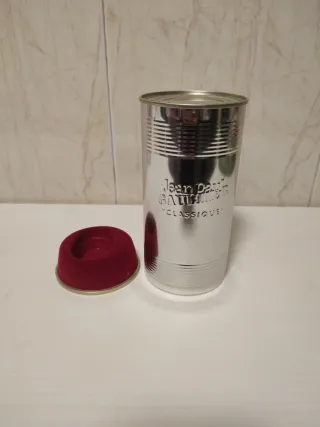 Estuche metálico de Jean Paul Gaultier. - Diseño plateado con detalles acanalados. - Grabado del nombre de la marca.