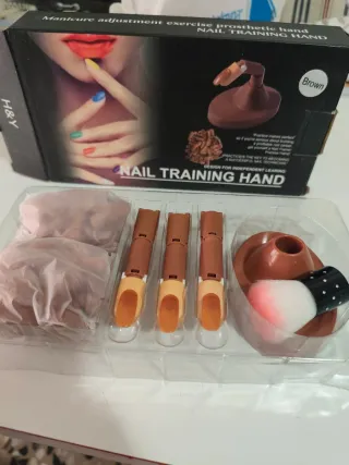 Set de dedos para practicar manicura y ejercicios de uñas. Incluye varios dedos de práctica y un cepillo. - Diseñado para aprendizaje independiente. - Ideal para convertirse en un técnico de uñas exitoso. - Incluye soporte para los dedos. - Incluye tips de uñas para practicar. - Incluye una brocha.