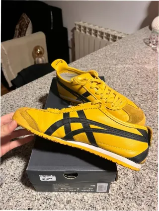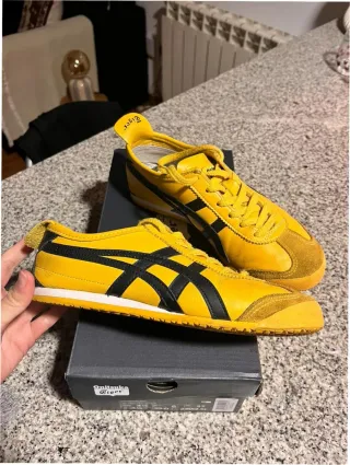 Zapatillas clásicas Onitsuka Tiger Mexico 66. - Diseño icónico en amarillo y negro. - Suela de goma para mayor durabilidad. - Cierre con cordones para un ajuste seguro.