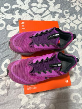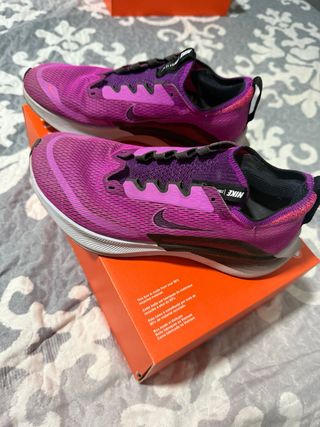 Zapatillas deportivas Nike Zoom Fly 4 en tonos rosa y morado. Diseñadas para correr con comodidad y estilo. Usadas para muy pocos km , la suela esta prácticamente nueva! - Parte superior de malla transpirable. - Suela con amortiguación ZoomX. - Cierre de cordones. - Detalle de logo Swoosh. Precio negociable