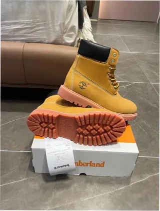 Botas Timberland de estilo clásico, perfectas para cualquier ocasión. - Color marrón con detalles en rosa. - Talla 46.