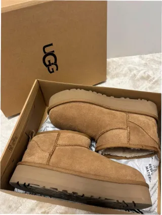 Botas de la marca UGG en talla 40. Un clásico para mantener los pies calientes. - Exterior de ante. - Forro interior de pelo sintético. - Suela de goma con plataforma.