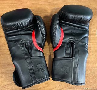 Par de guantes de boxeo Sting. - Diseño en color negro con detalles en rojo. - Cierre de velcro. - Logotipo de Sting en la muñeca. - Peso de 12 oz.