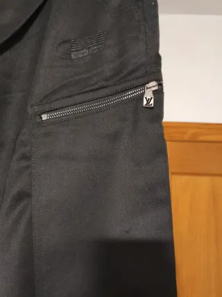 Pantalones cargo de Louis Vuitton en color negro. - Diseño con múltiples bolsillos. - Cremalleras decorativas en los bolsillos laterales. - Etiqueta de la marca visible.