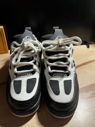 Estas bambas Louis Vuitton totalmente originales están en excelente estado, prácticamente nuevas, solo me las he puesto 5 o 10 veces contadas. Tienen un pequeño detalle en las suelas, unas ligeras manchas, pero por lo demás están perfectas. Este modelo ya no se encuentra a la venta, así que es una oportunidad única si buscas unas bambas originales y exclusivas. Perfectas para quien quiere un estilo único y de calidad. Si necesitas ver más fotos o tienes alguna pregunta, no dudes en hablarme. 🫶🏼