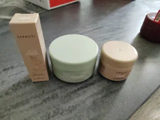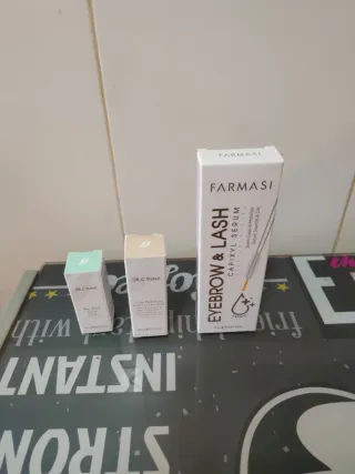 Lote de productos de cuidado personal de la marca Farmasi. - Sérum para cejas y pestañas. - Tratamiento facial Dr. C. Tuna Tea Tree. - Tratamiento facial Dr. C. Tuna Lumi Radiance.
