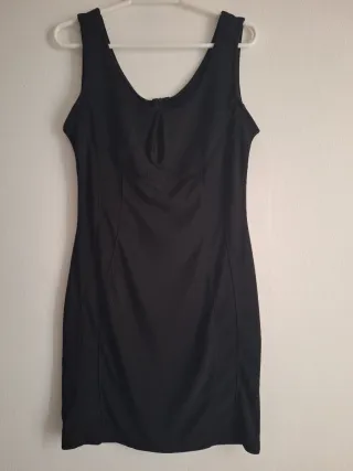 Vestido negro corto de corte entallado, ideal para realzar la figura. Muy elastico. Talla L pero no es muy grande. - Diseño sin mangas. - Escote con detalle. -Apertura trasera con cremallera invisible. - Costuras laterales que definen la silueta. *La 3° foto es para ver como es el tejido. *La marca no es la que pone en el anuncio pero me obligan a poner una.
