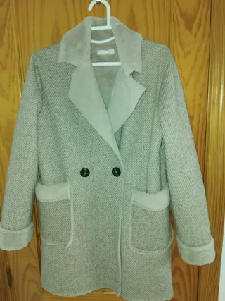 Abrigo de pelo beige y gris