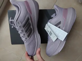 Zapatillas deportivas Adidas Ultrabounce en tonos rosa y morado. - Diseño moderno y cómodo. - Detalle de las tres bandas icónicas de Adidas. - Suela con tecnología Bounce para mayor amortiguación.