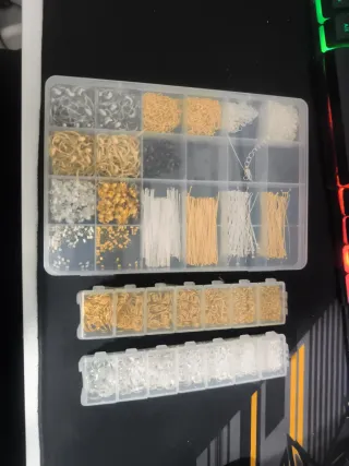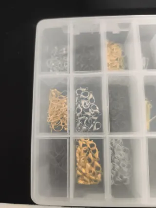 Completo surtido de accesorios para la creación de joyas y bisutería. - Incluye anillas, cierres y otros componentes. - Variedad de tamaños y estilos.
