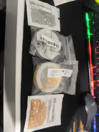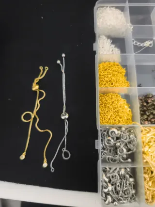 Conjunto de accesorios variados para la creación de tus propias joyas y bisutería. - Incluye cadenas y cierres. - Piezas metálicas para ensamblar. - Ideal para proyectos creativos.
