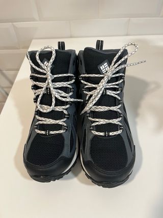 Botas de senderismo Columbia Grove Heights Outdry en color negro y gris. Son impermeables y cuentan con la tecnología Techlite. Solo me las he puesto una vez. Me las he comprado algo pequeñas. Una faena. Por lo demas muy comodas. Waterproof - Cierre de cordones. - Suela de goma. - Detalle de logo de Columbia.