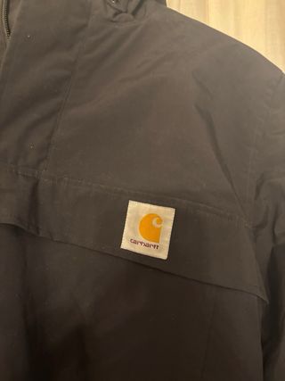 Cazadora Carhartt de color negro. - Diseño con capucha. - Bolsillo frontal. - Cordones ajustables en el bajo.
