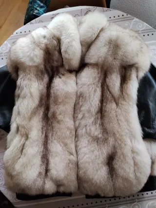 Chaqueta vintage de piel natural con un diseño elegante, juvenil y muy ponible - Material: Piel natural zorro azul y mangas de cuero