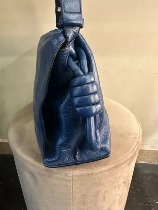 Bolso bandolera de piel muy suave. Azul cobalto. Usado pero sin defectos. Medidas 29 x 26 cm. Cierre cremallera. Bolsillo externo e interno con cremallera. Comprado en tienda Clarks Londres, pero no tiene marca ni logo.