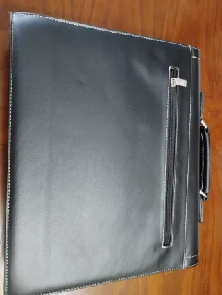Elegante portadocumentos de cuero sintético, ideal para reuniones de negocios u oficina. - Diseño ejecutivo. - Cierre con cremallera. - Bolsillo interior con cierre. - Costuras reforzadas. - Calculadora - Gran tamaño ideal como regalo! precio en tienda 40 euros