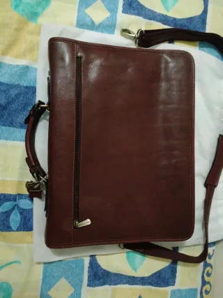 Maletín ejecutivo Vaporetto Barcelona, elaborado en piel vacuna auténtica de alta calidad. Está nuevo, sin estrenar, e incluye su funda original. Ideal para trabajo, estudios, documentos, portátil fino o uso profesional. Características: - Piel vacuna 100% – gruesa, resistente y elegante. - Interior textil suave y duradero. - Gravado del colegio de minas en el frontal derecho inferior - Compartimentos amplios para documentos, tablet o portátil delgado. - Bolsillos interiores y bolsillo con cremallera. - Cierre metálico tipo clip muy seguro. - Asa superior reforzada - Color marron cuero clásico - Se entrega con funda protectora origi