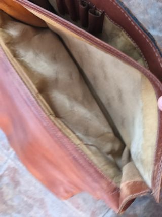 Precioso maletín de cuero genuino en color marrón coñac. Diseño clásico atemporal, ideal tanto para uso diario como para pieza estética / decoración. El cuero presenta una pátina muy bonita que le da carácter vintage. Muy resistente y de gran calidad. ✔️ Cuero auténtico ✔️ Correa bandolera incluida ✔️ Compartimentos interiores ✔️ Cremallera trasera ✔️ Estilo ejecutivo / retro Estado muy bueno. Perfecto para trabajo, universidad o amantes de piezas de cuero clásicas.