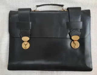 Elegante cartera vintage de cuero, ideal para llevar documentos. - Diseño clásico y atemporal. - Compartimentos interiores organizados. - Cierre con hebillas de seguridad. - Asa lateral para un transporte cómodo.
