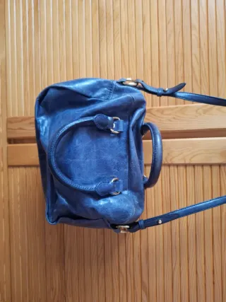 Bolso de mano y bandolera de la marca Bimba y Lola. - Color azul marino línea Heritage. - Logo metálico de la marca en la parte frontal. - Asa corta para llevar en mano y correa larga ajustable para bandolera. Es una piel muy blanda y flexible, lo que hace que el bolso sea ligero y se adapte al cuerpo cuando lo llevas colgado. Tiene forma de maletín redondeado, un diseño atemporal que ofrece mucha capacidad interior sin verse excesivamente grande.