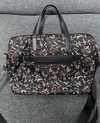 Bolso de nylon con un bonito estampado floral y detalles en piel. - Compartimento principal con cierre de cremallera y varios compartimentos interiores. - Bolsillos exteriores con cremallera. - Asa de mano y correa ajustable para llevar al hombro. - Gran capacidad interior con compartimento acolchado para un ordenador portátil. - Ideal para el trabajo, la oficina o la universidad. - Medidas: 45 x 28 cm