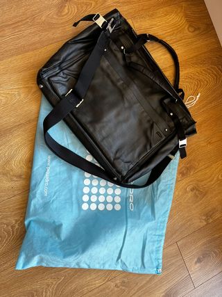 Usado una vez, de piel y nylon. cabe un portátil.de 15" y documentación adicional. Trato en mano en Barcelona.