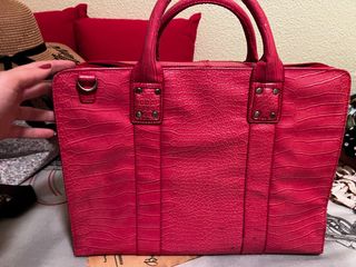Bolso para llevar el portátil, libros o apuntes a la universidad. No tiene etiqueta, pero no se estrenó. Piel - Diseño moderno y funcional. - Acabado liso y brillante. - Detalles en piel con textura de cocodrilo en los laterales. - Asas cómodas para llevar al hombro o en la mano.
