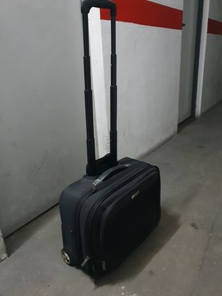 Maletín ejecutivo negro para portátil con ruedas. Está en buenas condiciones y es ideal para viajes de negocios. - Asa de transporte superior. - Compartimento principal con gran capacidad. - Compartimento para portátil acolchado. - Ruedas para facilitar el transporte.