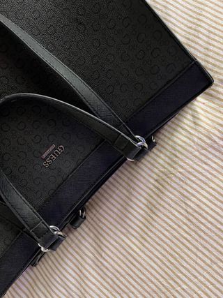 Bolso elegante para portátil de la marca Guess. - Color negro. - Compartimento principal para ordenador. - Asas de mano y correa ajustable para hombro.